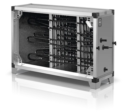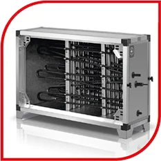 Нагревательные элементы мощностью от 7,5 кВт до 120 кВт из термостойкой нержавеющей стали, закрепленной на керамических изоляторах. Применение разделения общей мощности на ступени позволяет значительно экономить при монтаже и эксплуатации. Для защиты от перегрева используется двухступенчатая защита от перегрева, для плавного регулирования мощности применяются твердотельные реле (опция).