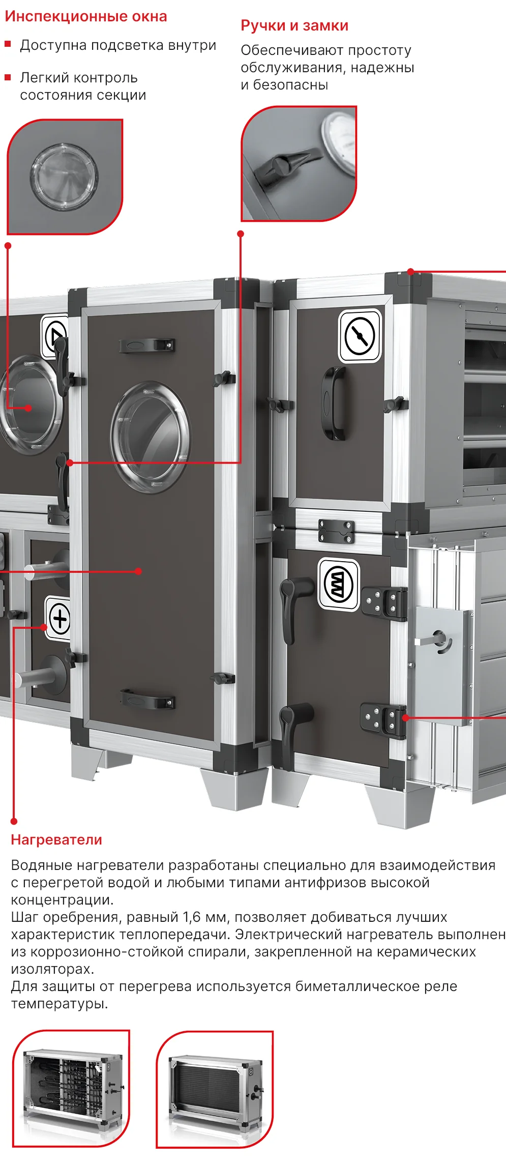 Инспекционные пустые секции для облегчения доступа к основным элементам агрегата (опция).