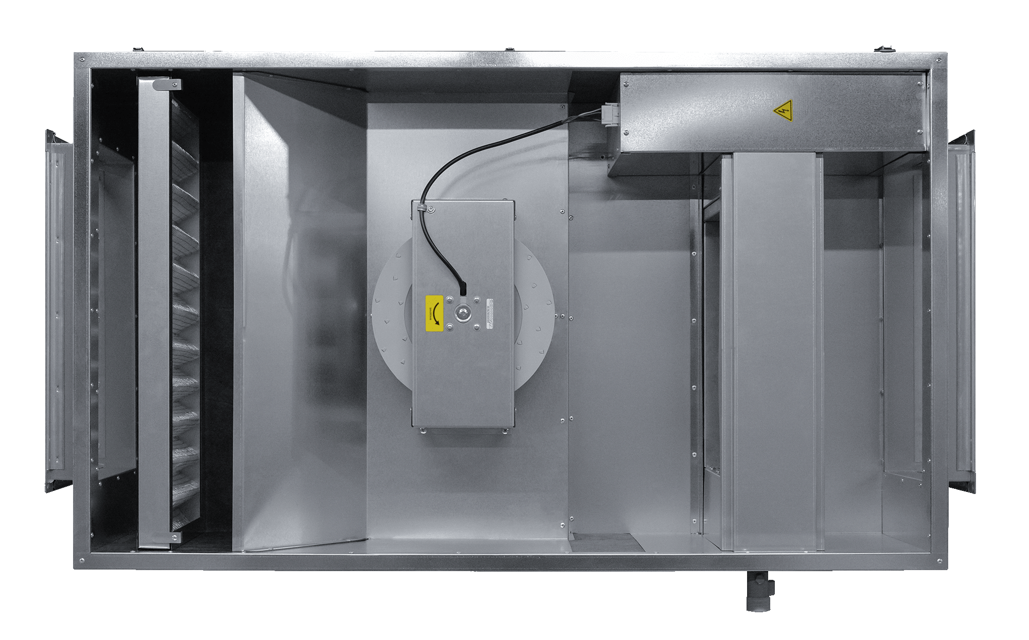 - Корпус из оцинкованной стали с тепло-звукоизоляцией 25 мм из базальтовой минеральной ваты.