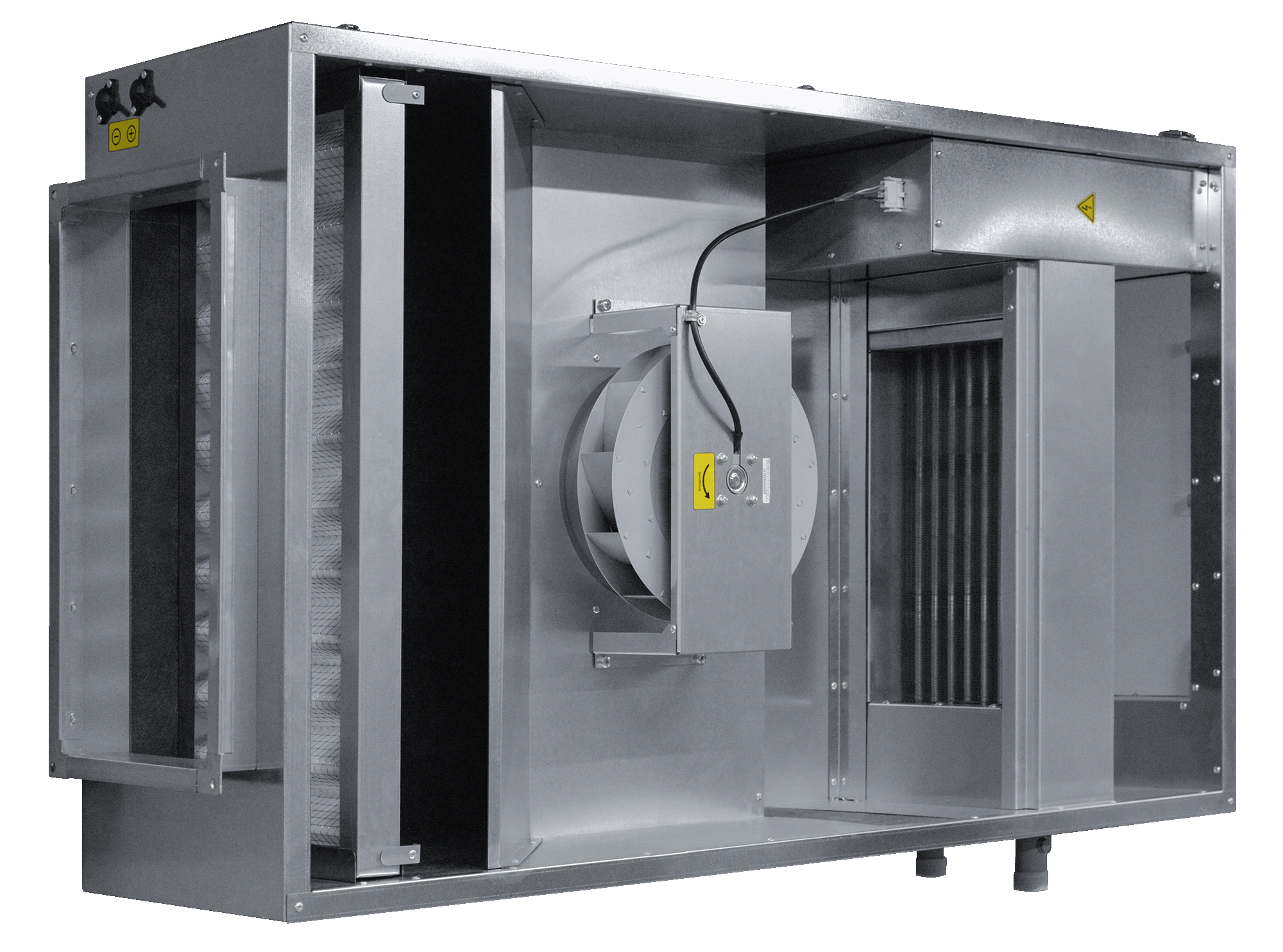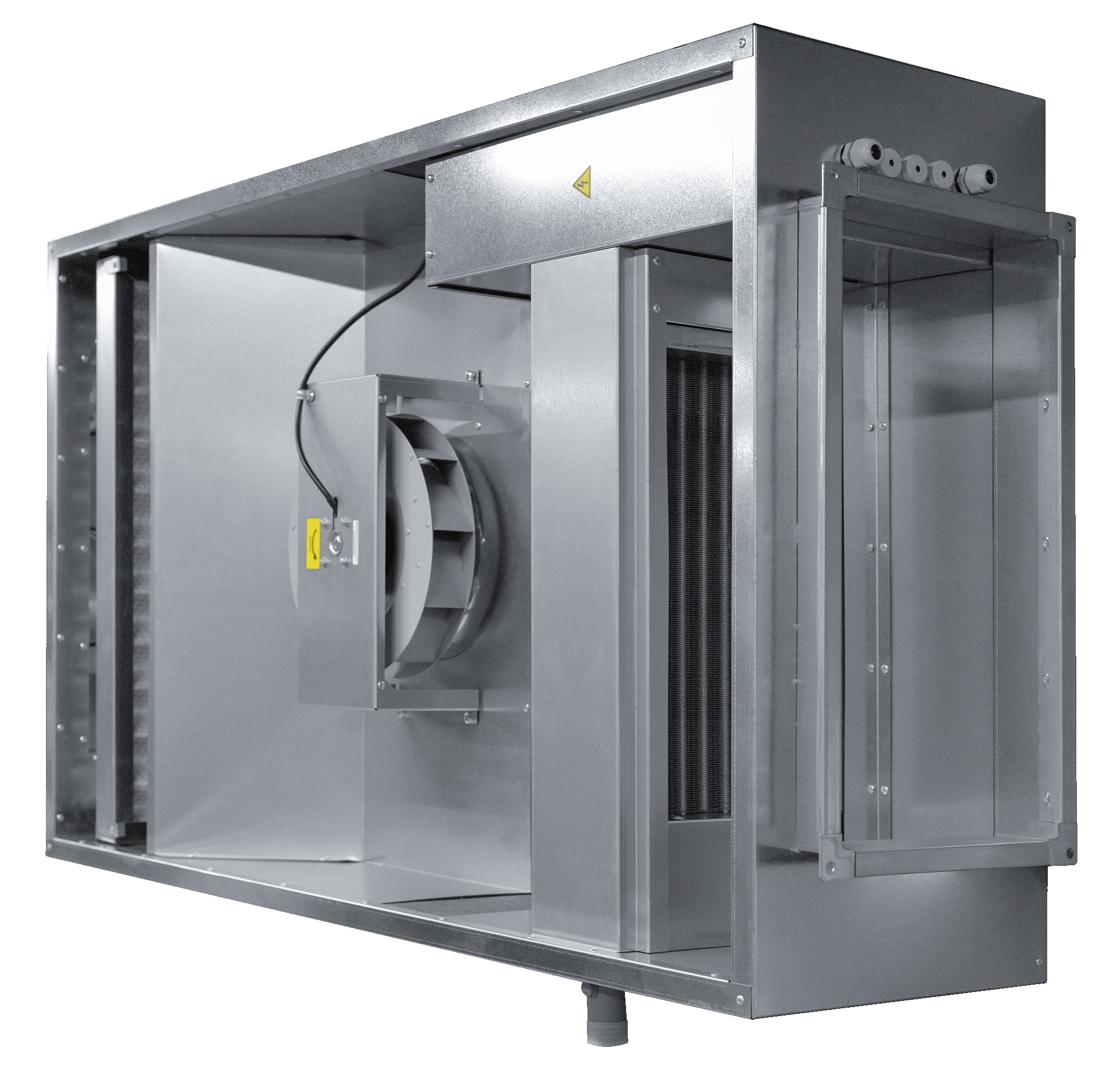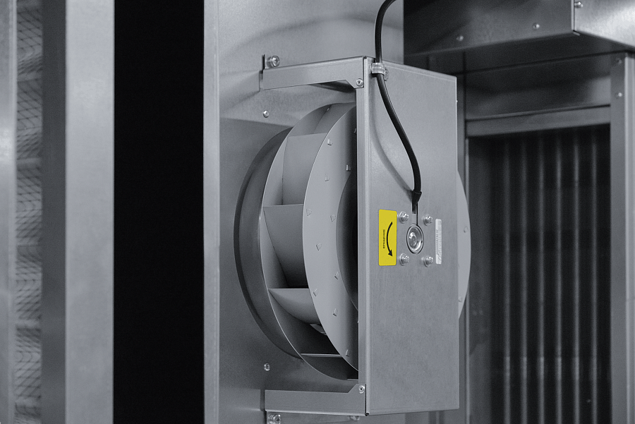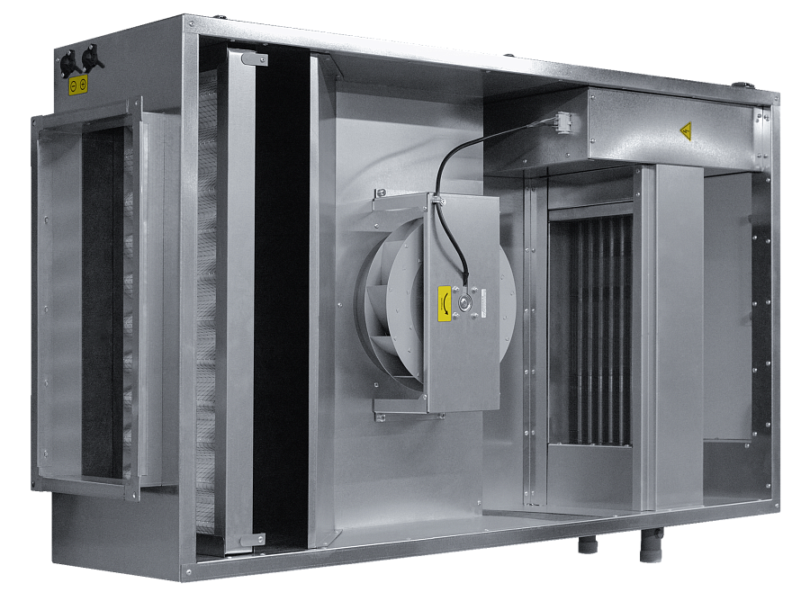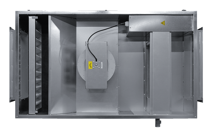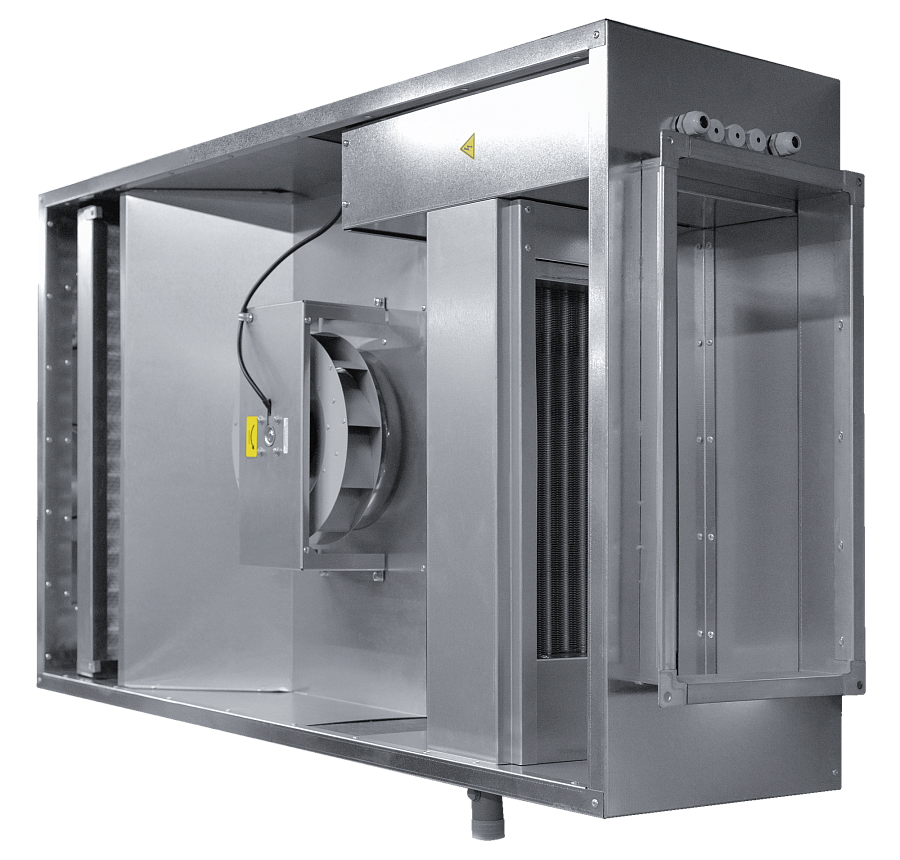 - Элементы установки имеют высокие степени защиты IP44: асинхронный двигатель с внешним ротором, клеммная коробка, короб для электросоединений нагревателя.